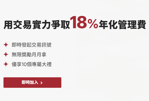 18%年化资金管理费,管理资金量>$1,000,000,跟随用户数>200